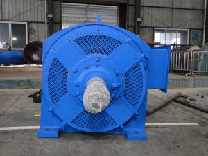 S-gerð rörlaga túrbína, einnig þekkt sem ásframlengd túrbína, notar lárétta áslæga uppröðun. Augljós byggingareiginleiki er að leiðarblöðin eru staðsett í 65° horni miðað við miðlínu einingarinnar og áslægur keilulaga vatnsleiðarbúnaður er notaður. S-gerð rörlaga túrbínu rennslisrás samanstendur af inntaksröri, sætishring, keilulaga vatnsleiðarbúnaði, rennslishólfi, útrásarkeilu, S-gerð dráttarolnboga og útrásarrás. Rennslisrás S-gerð rörlaga túrbínu er áslæg og vatnið rennur samsíða ás túrbínunnar að rennslinu.